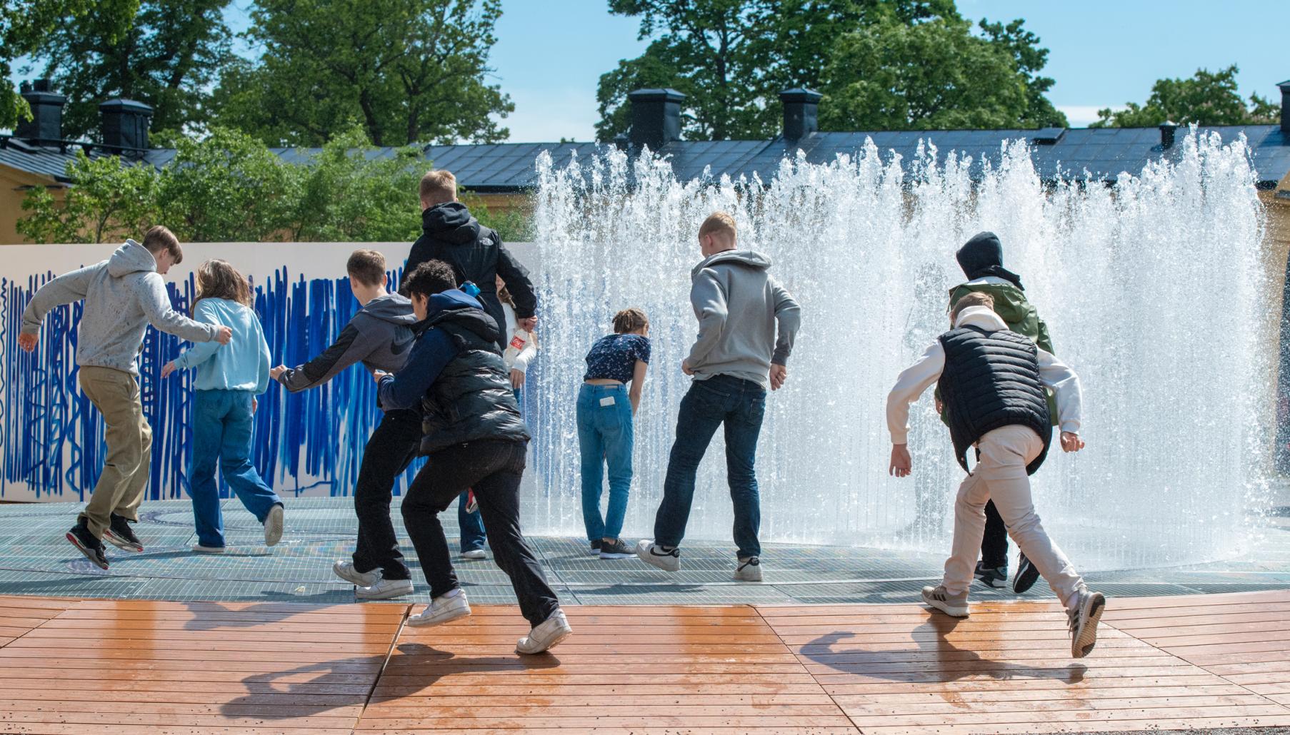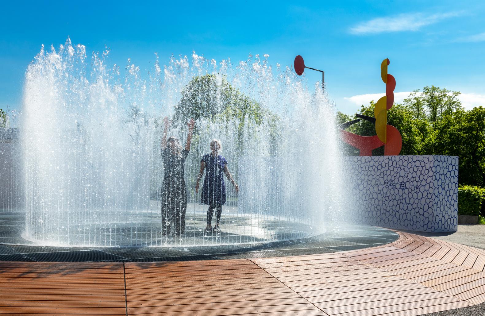 Installed in an open, public space the water pavilion activates the area and invites people to make use of the work, either as a space for seclusion and relaxation or the opposite, a place of pure joy and playfulness. Children will dash in immediately, adults hesitate at first, then often give a jolt and dare to go in after all.