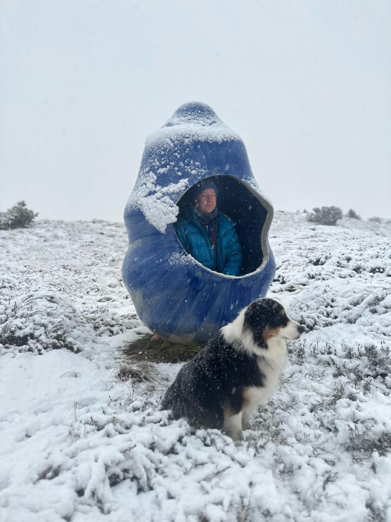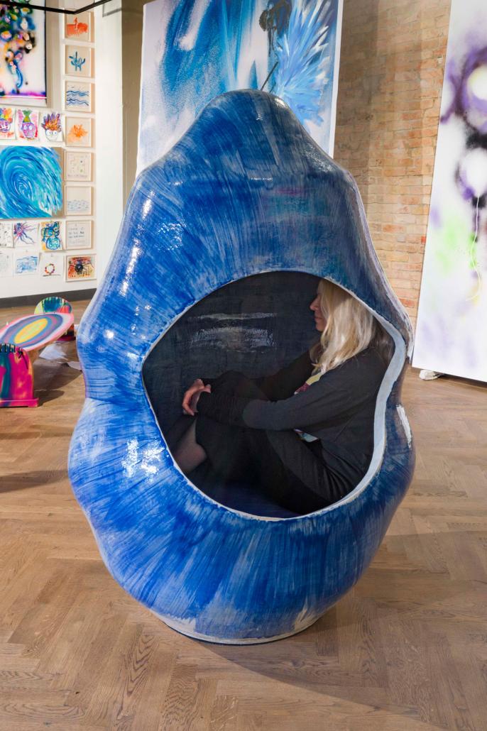 Space for Spaciousness is a large clay vessel in which visitors can sit down to experience a moment of quiet contemplation within the tranquility and darkness provided by the work. Year: 2024 Materials: glazed ceramic Dimensions: 178 x 117 x 117 cm
